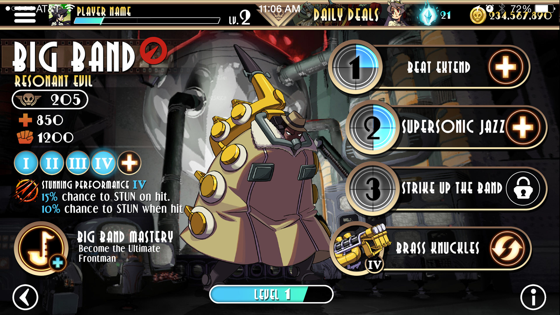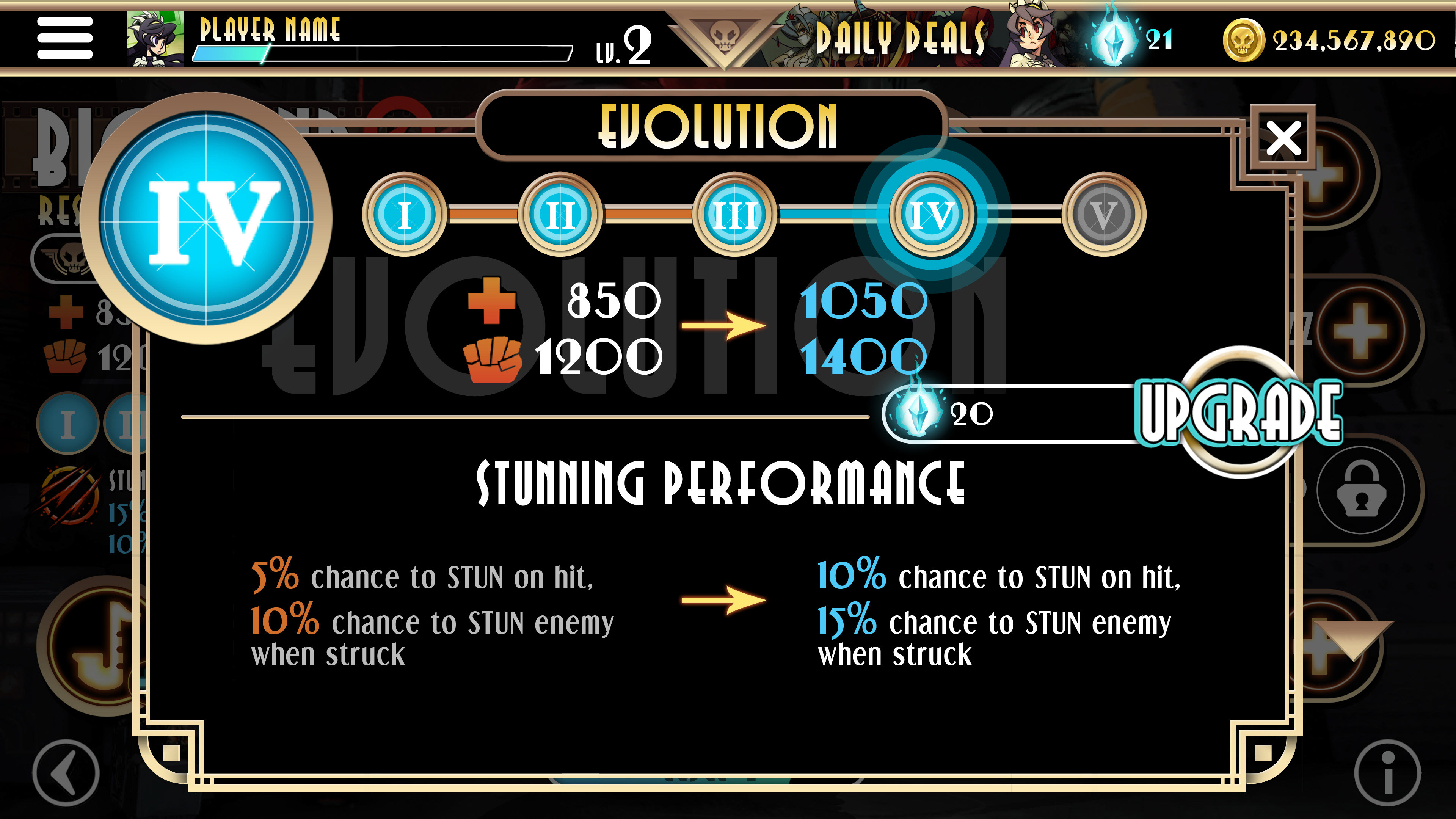 Character upgrade screen.