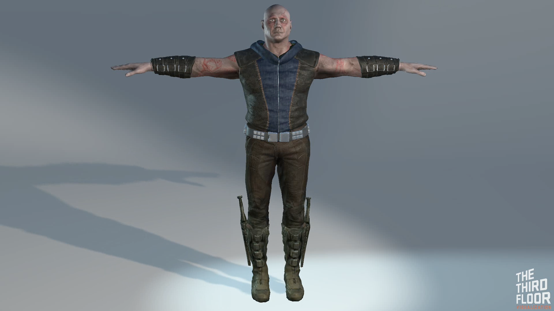 Drax in Casual outfit Model and Materials made to match costume used in scene.