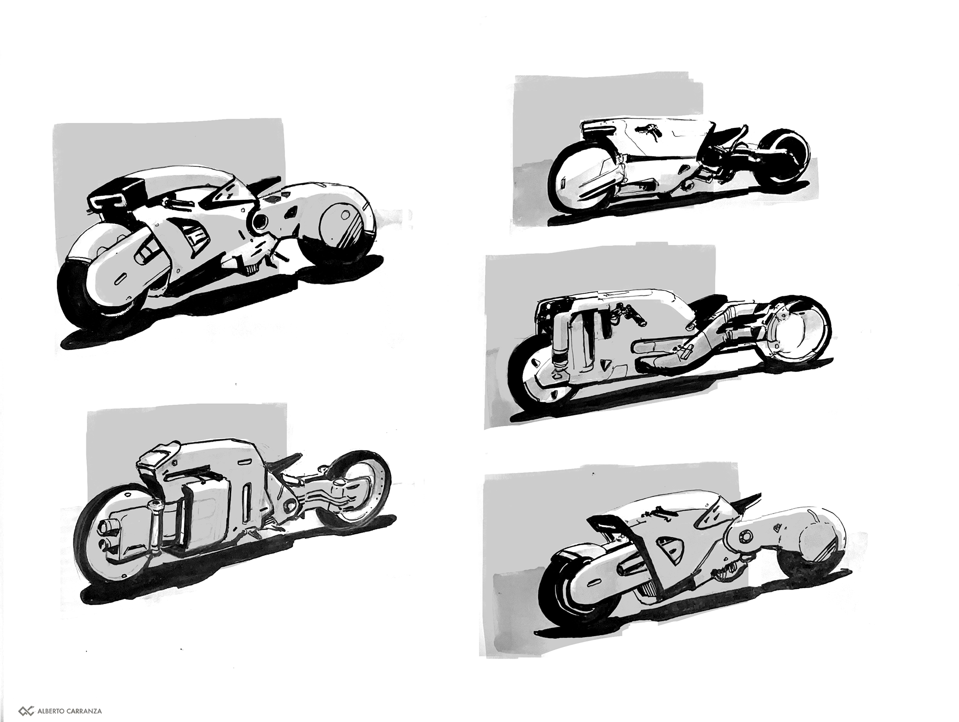 Motorcycles in the 2060's are no longer produced. Custom Bike hot rods are fabricated with reappropriated parts and 3D printing and machining. They are designed to take adavantage of the electrified roadways while still being powered by combustible fuel to traverse the older roads off the grid.