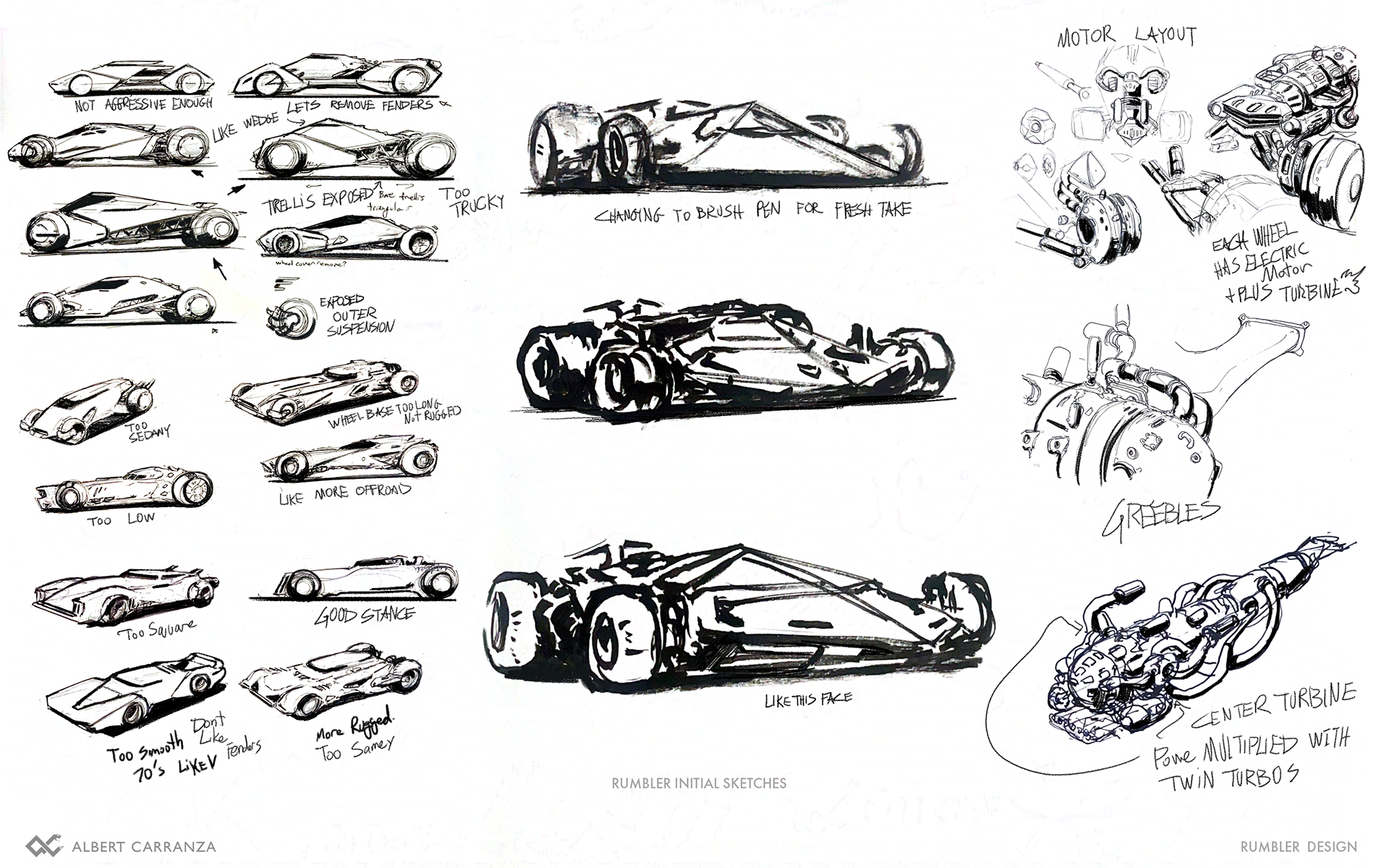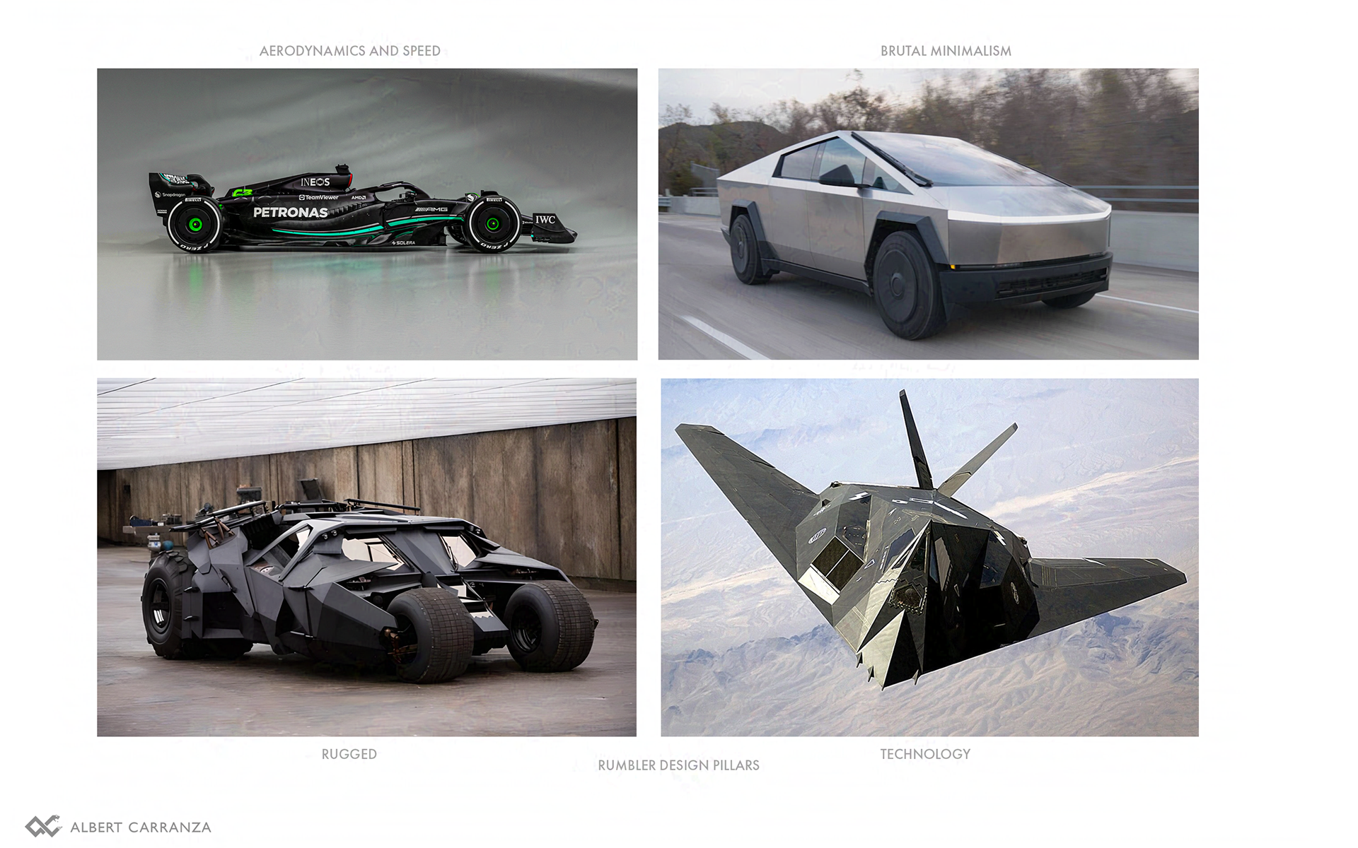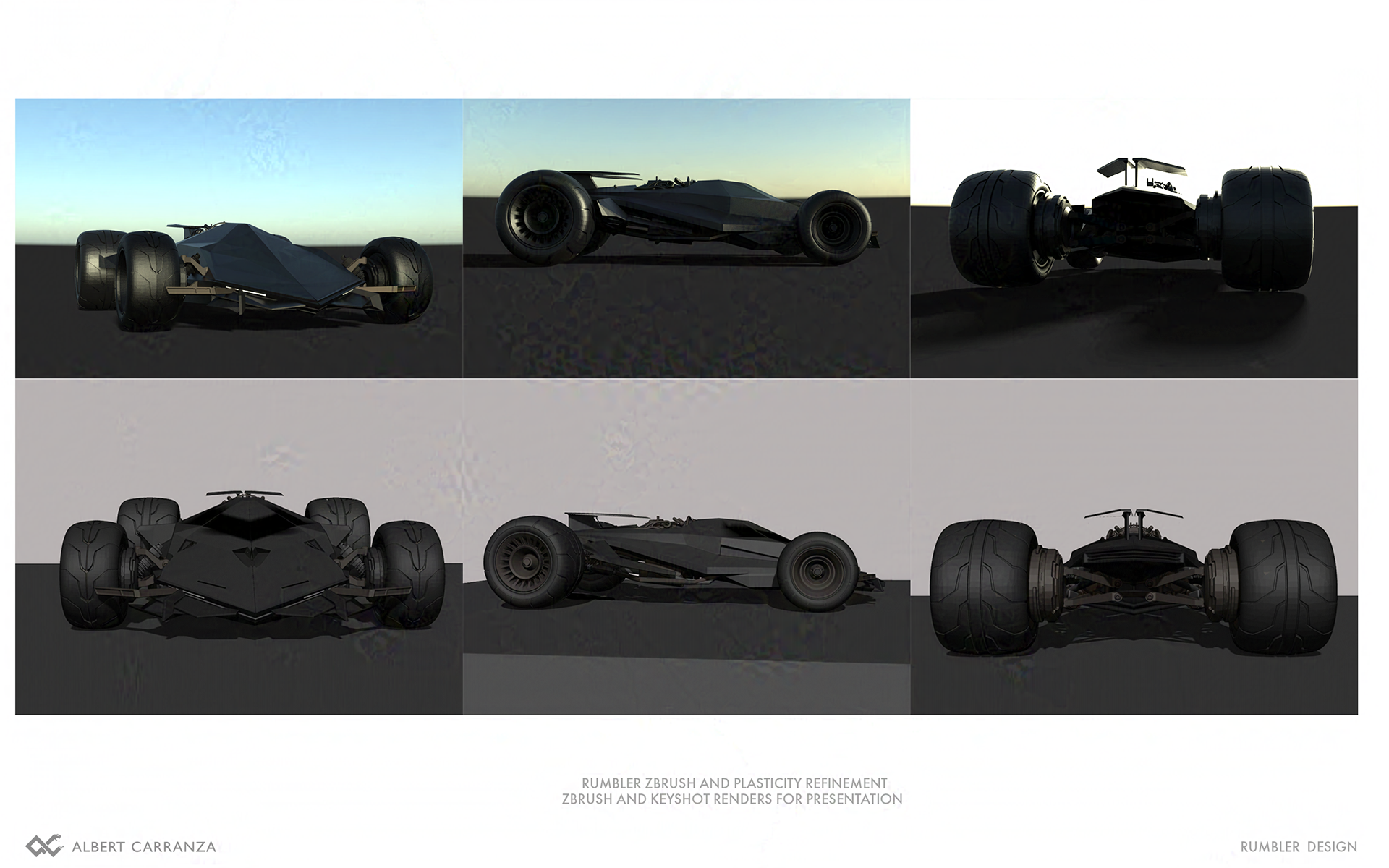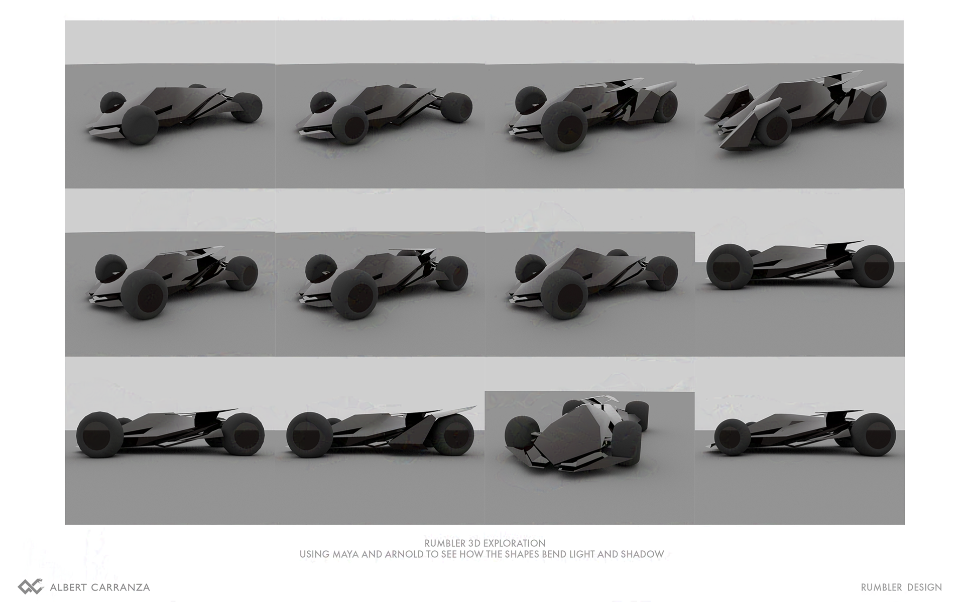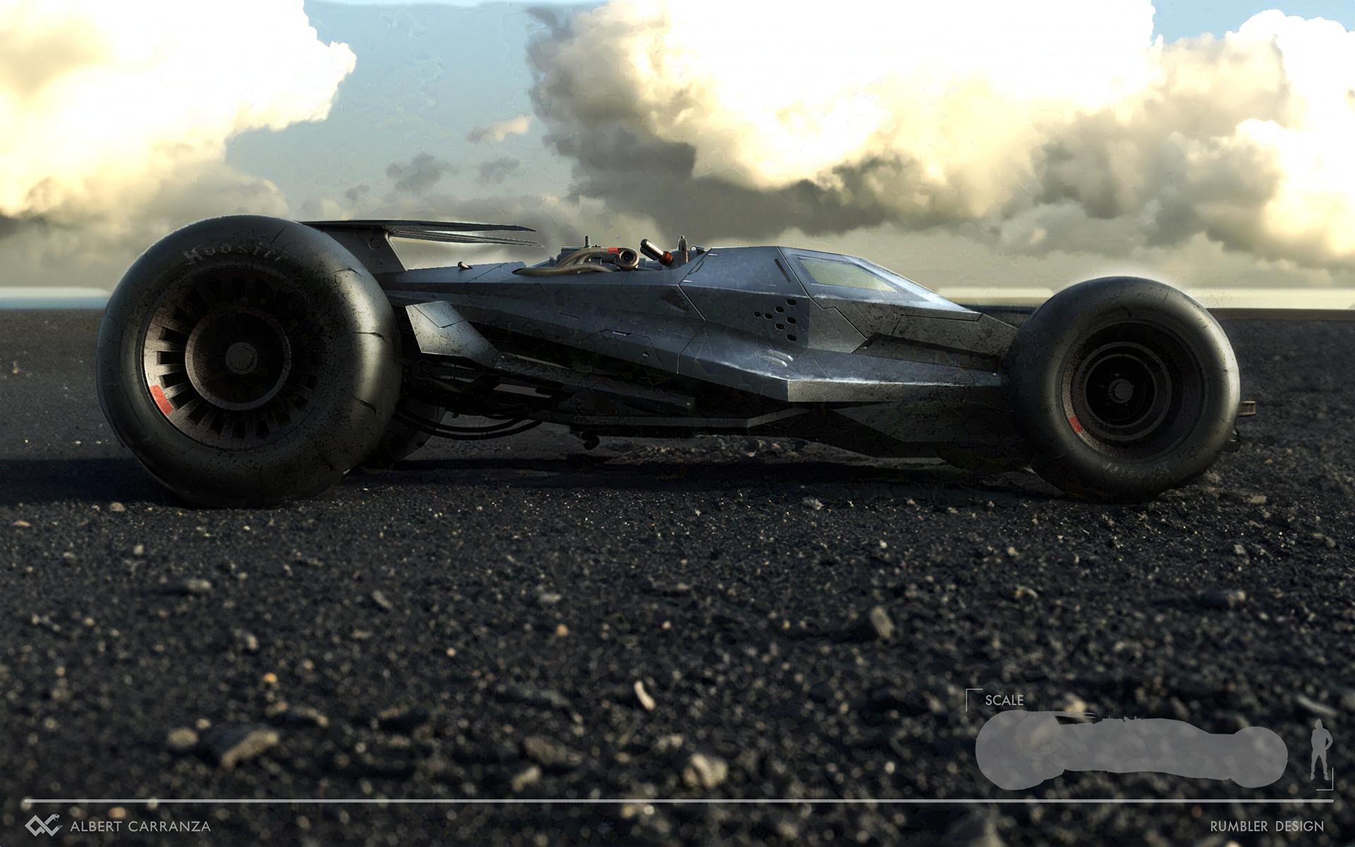 The Rumbler: Multi terrain vehicle built for durability and speed to survive what's next when civilized society crumbles. Inspired by my favorite elements of the batmobile, military tech and F1.